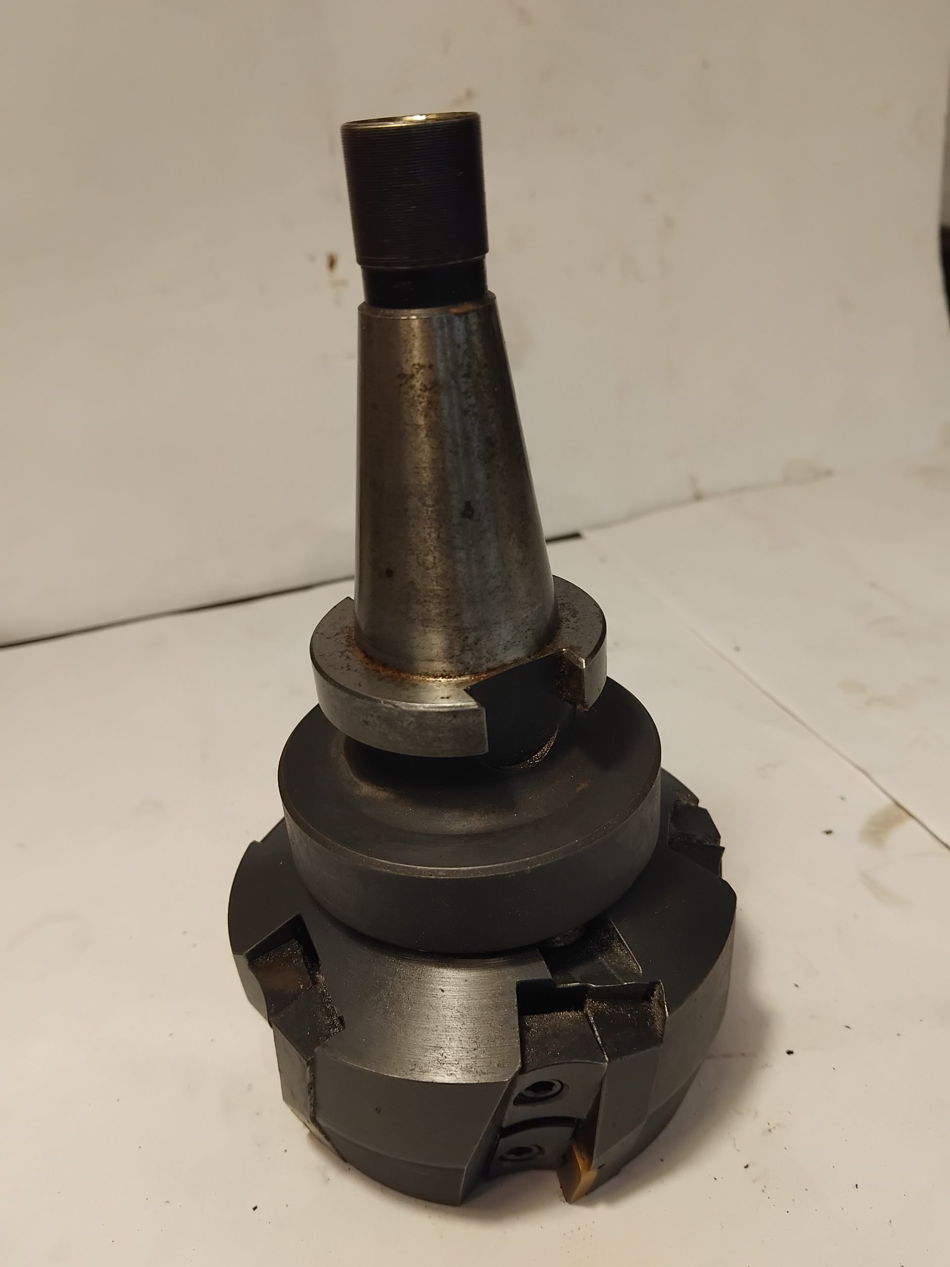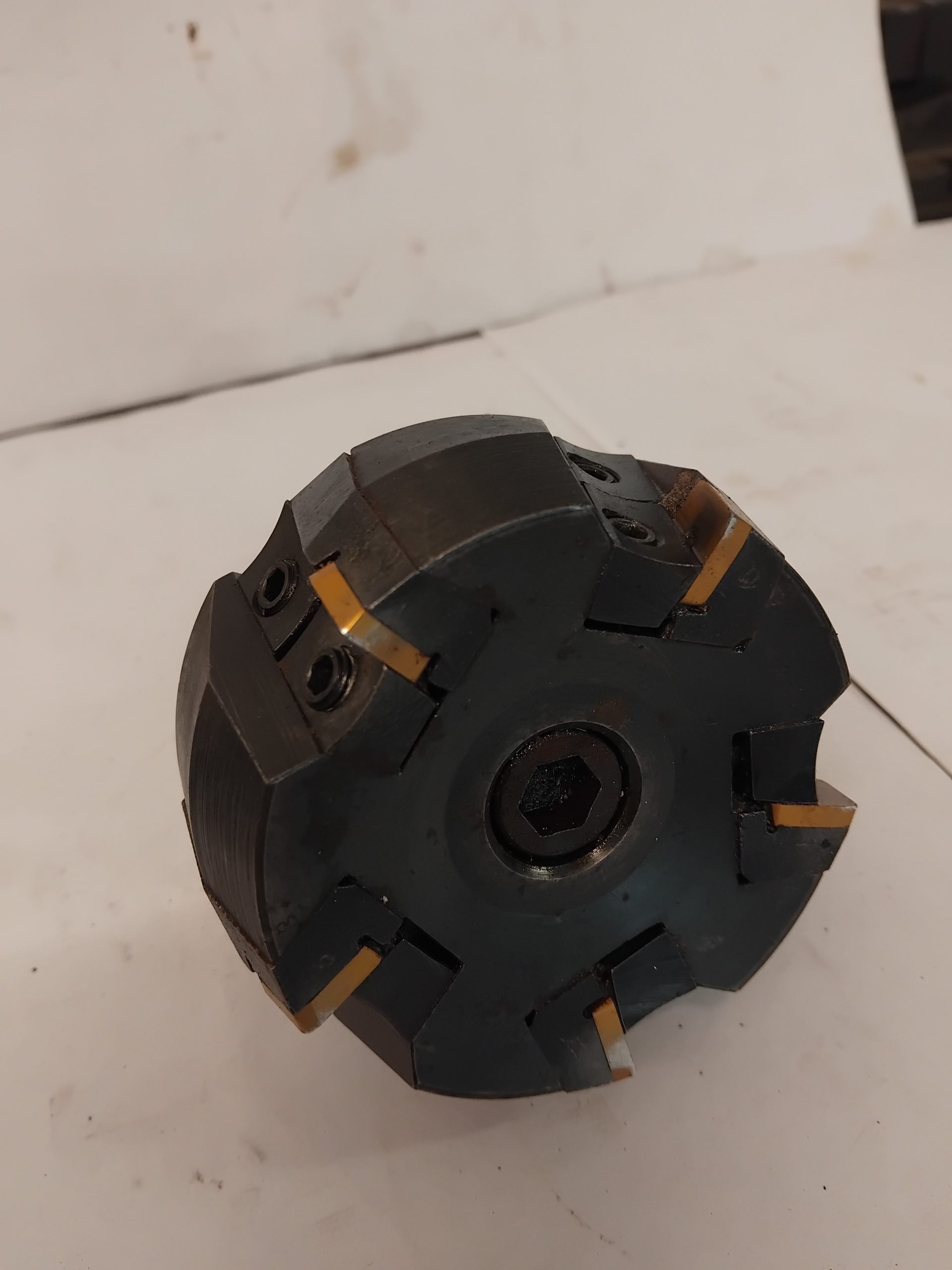 Multi carbide insert 78mm cutting diameter surfacing cutter with/on 30 International arbour in mint condition.