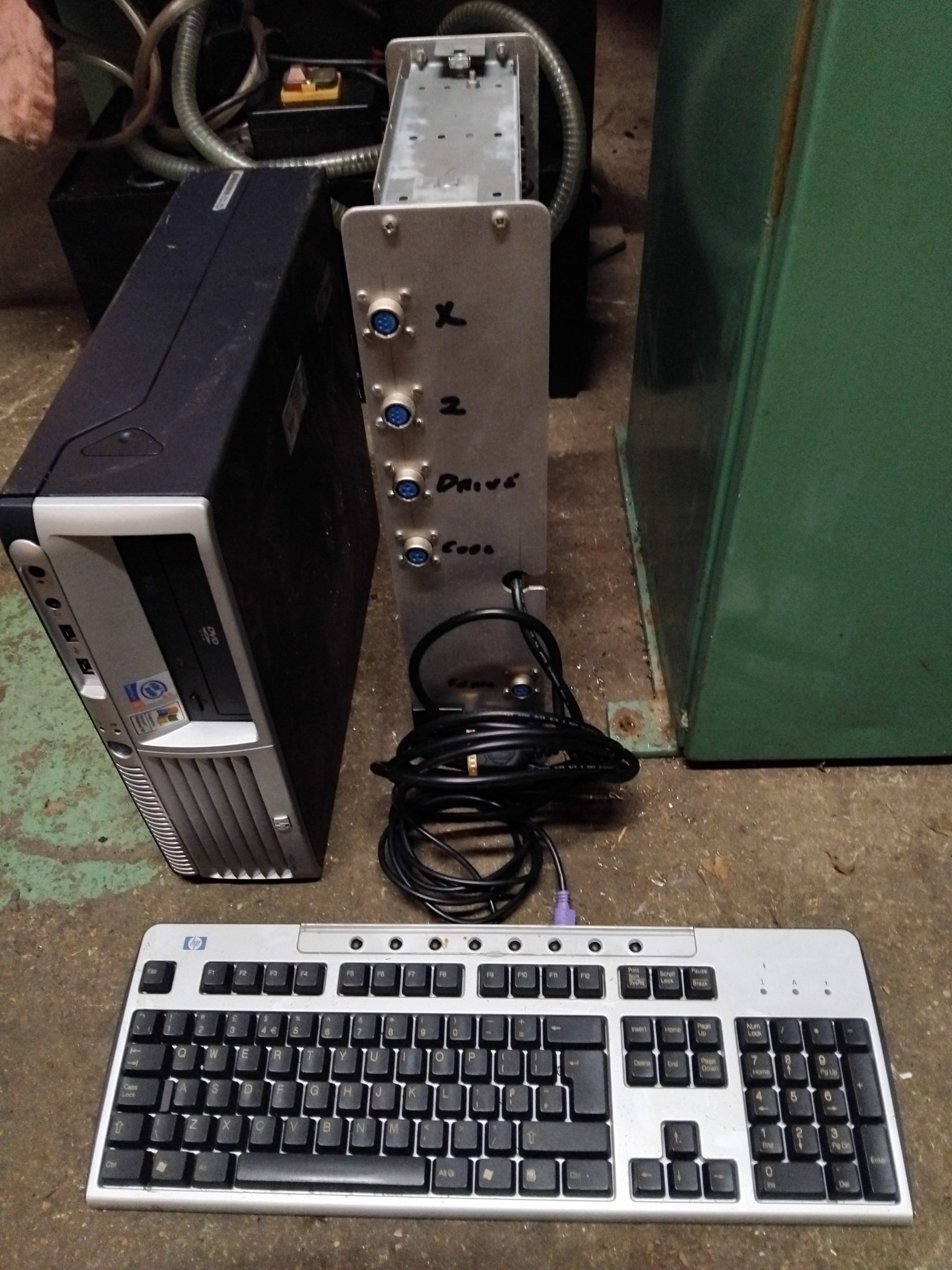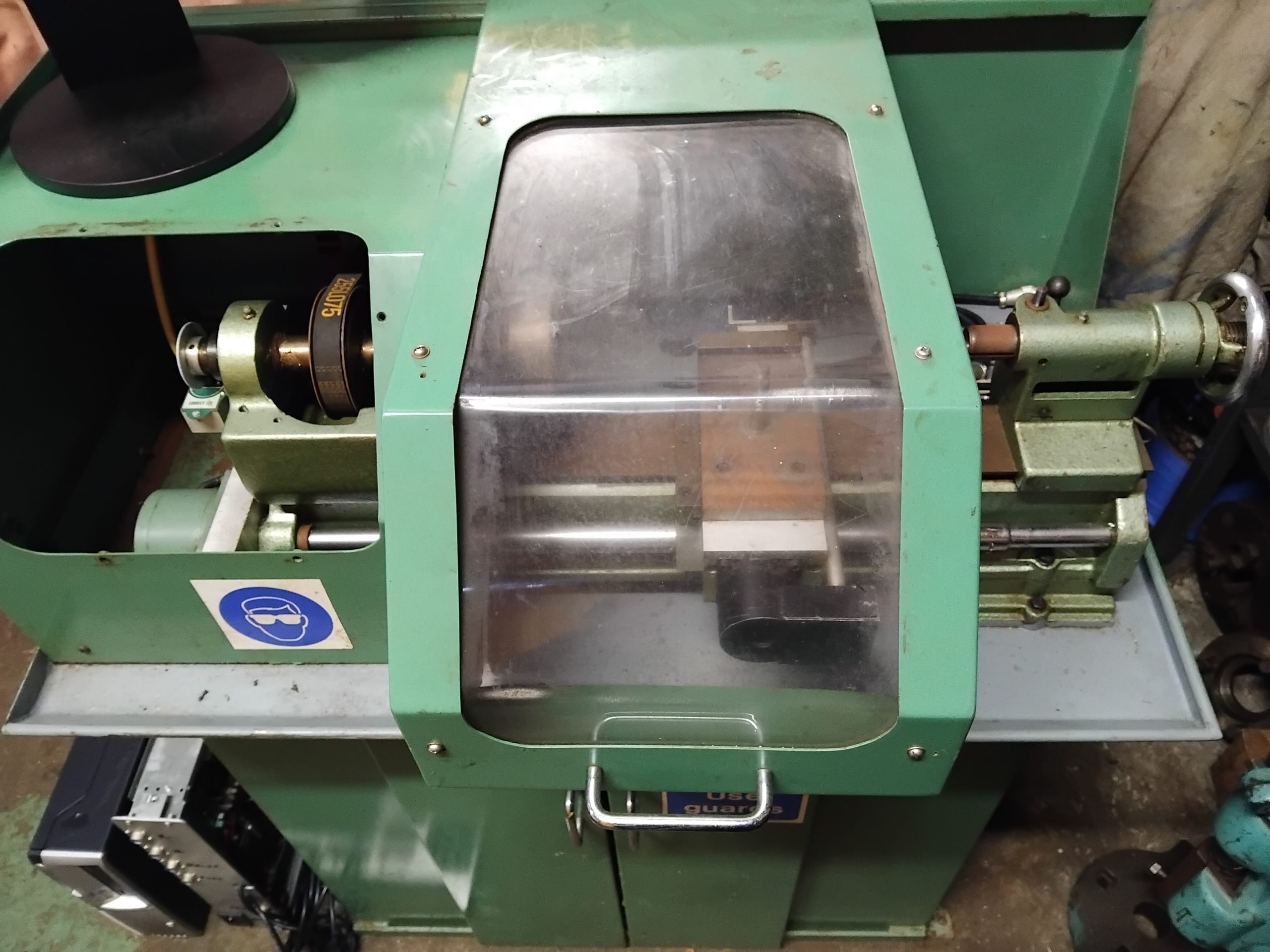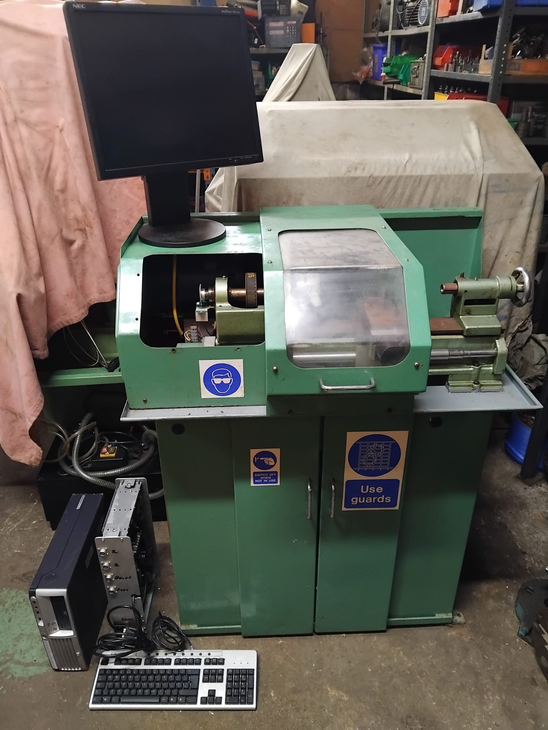 This Cabinet mounted Myford lathe has come from a deceased gentleman’s home workshop. It appears he was part way through converting it to CNC with servo drives to both axis and an indexed single phase spindle motor, if finished it could be a very capable little machine with digital screw cutting etc! Has an HP desktop PC + interface with leads, keyboard etc. Sold “as is”- unfinished finished project. I would also reduce the price if the cabinet stand is not needed.